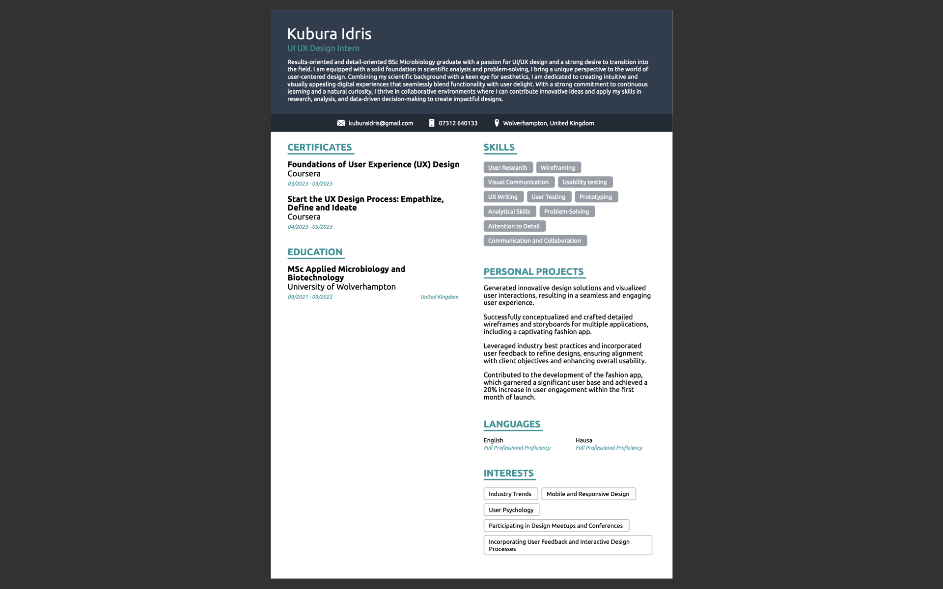 Hi, nice to meet you – I'm Kubura and I am an entry level UX Designer. I aim to gain invaluable experience in this field and improve my skill with every project I take on while helping a wide variety of users.