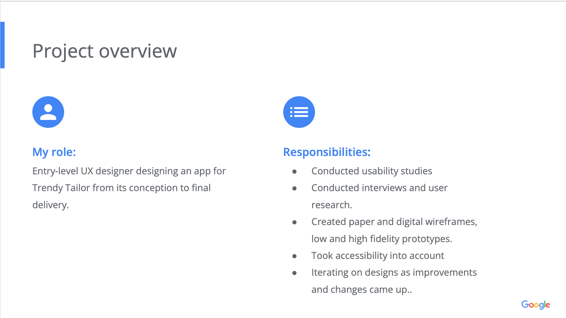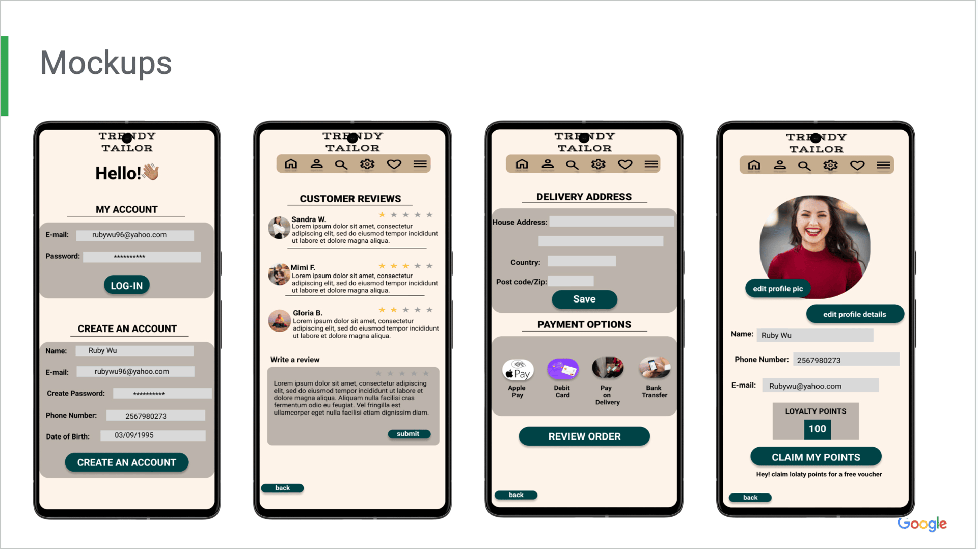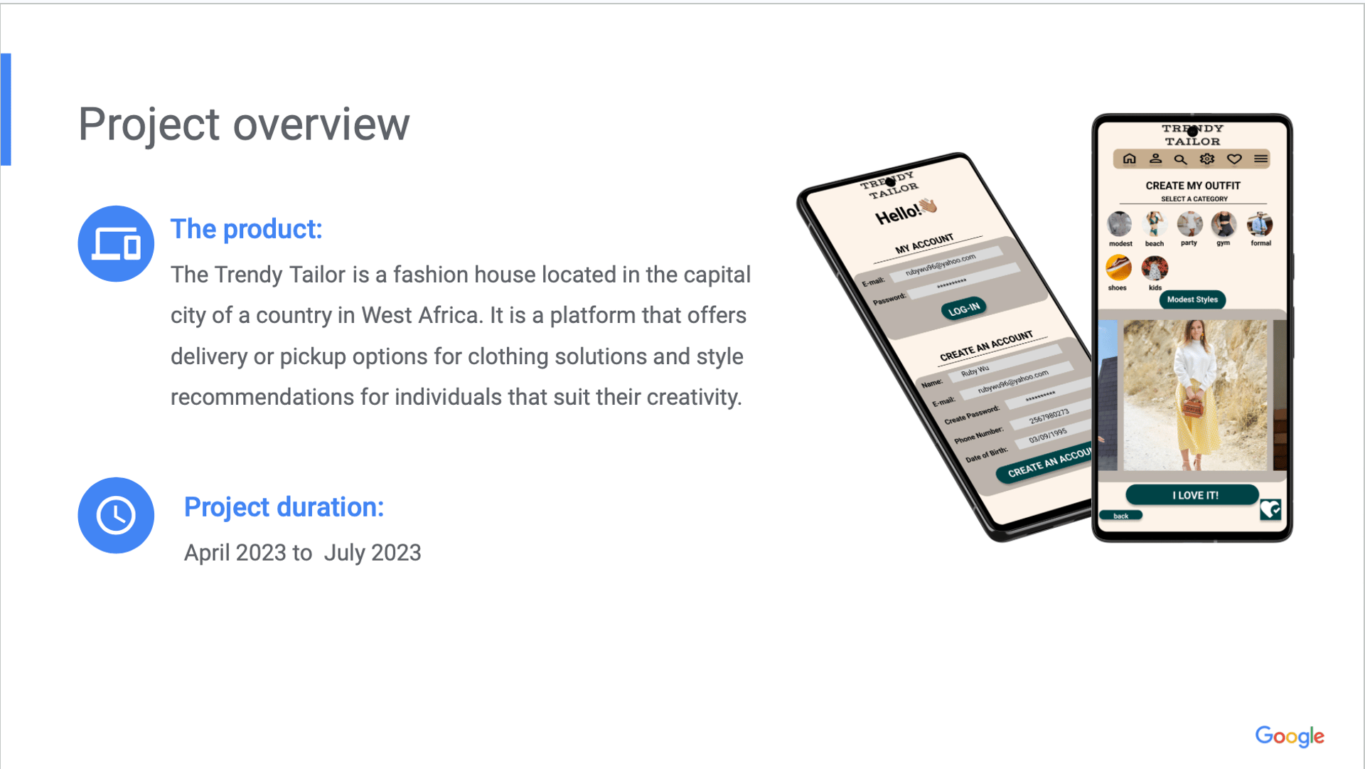 The Trendy Tailor app is my first project and it was created during my Google UX certificate course. It showcases everything I have learnt in the duration of the course. I hope to improve with every project I take on after this one. Please find the slide deck for the case study for the Trendy Tailor app.